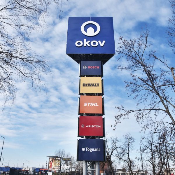 Freistehende Totems – eine großartige Wahl für Mehrmarkenwerbung, die auf dem Grundstück hervorstechen soll.