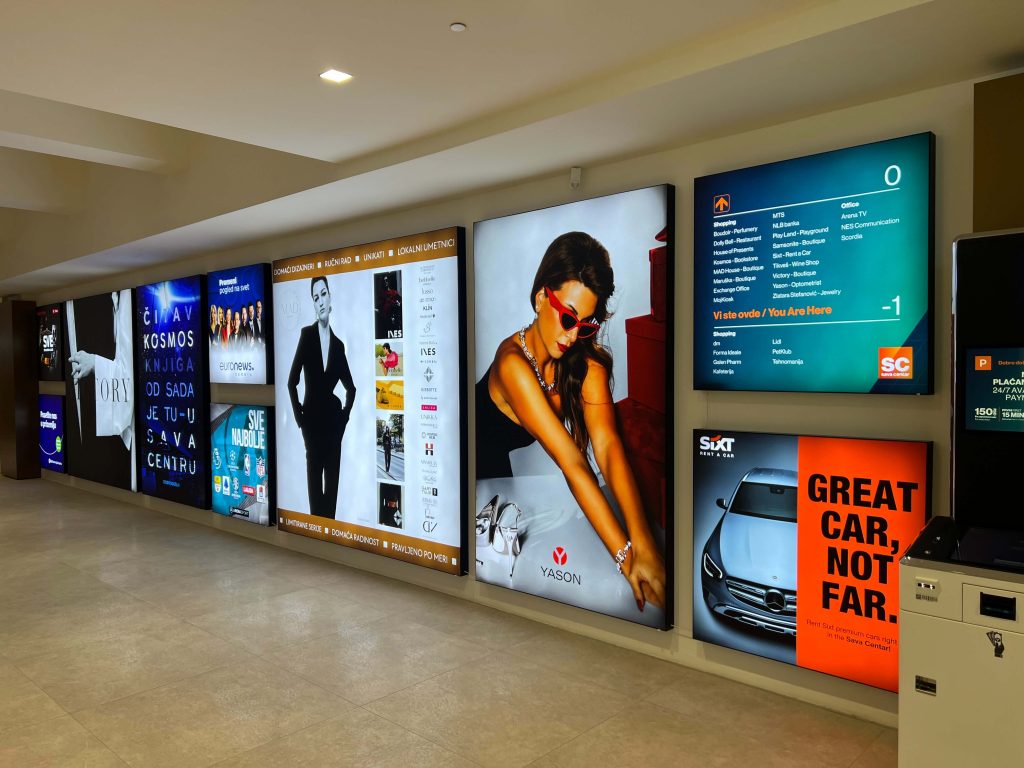 Die Wahl der Werbung hängt in erster Linie davon ab, ob sie im Innen- oder Außenbereich platziert wird.