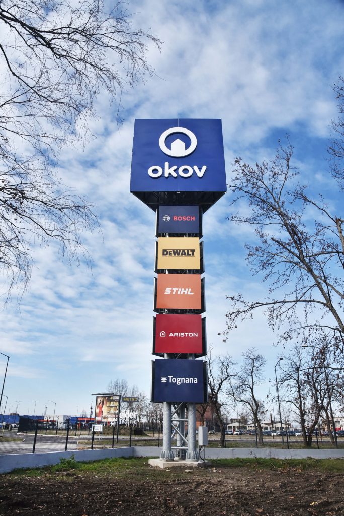 Freistehende Totems – eine großartige Wahl für Mehrmarkenwerbung, die auf dem Grundstück hervorstechen soll.